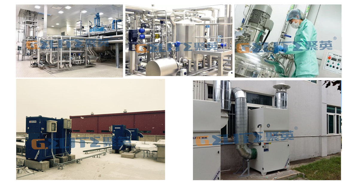 針對醫藥行業的配料、拌料、振篩、粉碎機、稱量、套膠囊、中藥前物理處理等工藝,在加工過程中通常會混合多種粉料,產生的粉塵具有小風量,高濃度等特性,可使用振打布袋除塵器、濾筒除塵器、脈沖布袋除塵器。