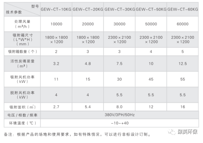 活性炭吸附+CO催化燃燒工程機(jī)參數(shù)規(guī)格表